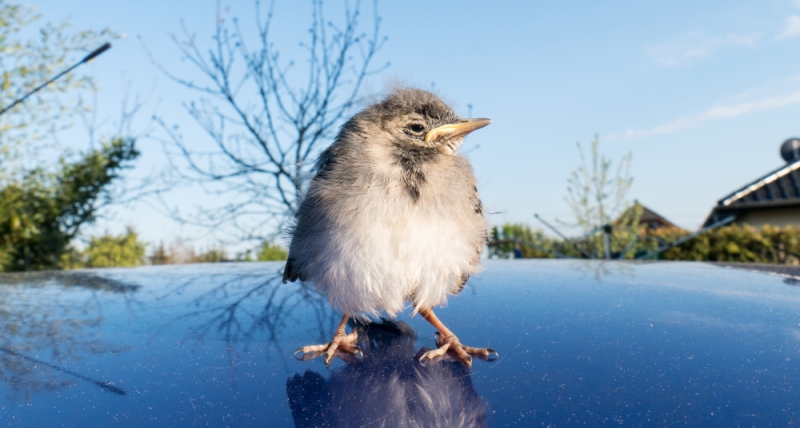 Блестящие поверхности и боковые зеркала также привлекают птиц. Отражения могут восприниматься как соперники, особенно в брачный период, что заставляет птиц неоднократно нападать на машину.